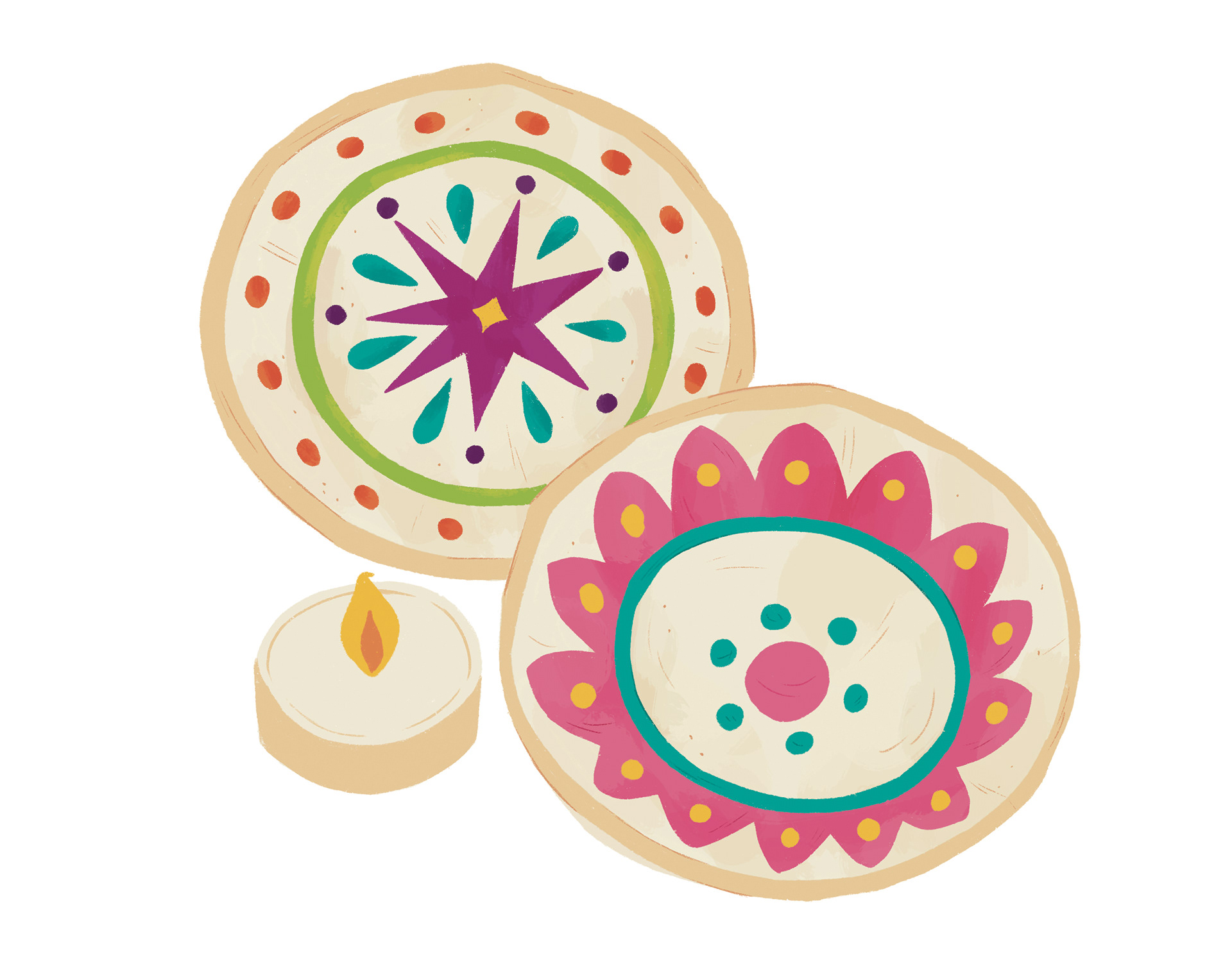 Illustrations done for "All about Diwali'. Its an activity book to help celebrate Diwali with day's and yummy recipies.